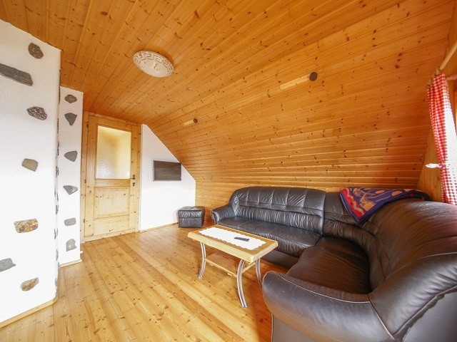 Die Wohnung im unteren Bereich besteht aus einer Küche mit Holzherd, gemütlicher Sitzecke und einer Schlafecke (Bett 140 x 190), ein Schlafzimmer mit Stockbett, ein Schlafzimmer mit Doppelbett, ein Duschbad und ein separates WC.