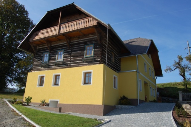 Bauernhof Urlaub in einer Ferienwohnung. Diese liegt im zweiten Stock (unterm Dach) und ist komplett renoviert, ohne dabei den bäuerlichen Charakter des Hauses zu zerstören. Hier wird in Vollendung Moderne mit Tradition verbunden. In der Ferienwohnung ist Vollholzparkettboden verlegt - ebenso sind die Möbel hochwertig und neu. Ein großer offener Raum mit Küchenzeile, Essbereich und Sofaecke mit alten Balken und traumhaften Ausblick über das Land und auf beiden Seiten auf einen Nußbaum erwartet Sie beim Betreten der Ferienwohnung. Ebenfalls zwei große Doppelschlafzimmer (eines mit zwei Einzelbett und eines mit einem Doppelbett und ein Duschbad, sowie ein separates WC befinden sich in der Ferienwohnung. Die alten, dicken Wände wurden mit natürlichen Rohstoffen gedämmt und sorgen für ein angenehmes Wohnklima. Zur Ferienwohnung gehört ein kleiner Balkon. Die Gäste können aber den riesigen Garten nützen. Hier ist ausreichend Platz zum Spielen, Toben und auch zum Entspannen. Den kleinen Gästen steht Spielzeug, ein kleines Spielhaus und im Sommer ein aufblasbarer Pool für den Urlaub zur Verfügung. Für die großen Gäste gibt es Stühle, Tisch, Liegen sowie einen Grill. Die Wohnung kann bis zu 6 Personen gebucht werden (der angegebene Preis ist für 4 Personen - jede weitere Person € 5/Nacht). Bauernhof Urlaub in Kärnten der Groß und Klein begeistert.