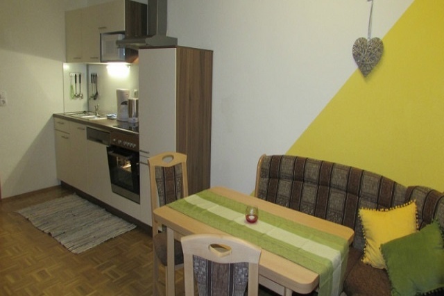 Am Hof gibt es 5 Ferienwohnungen. Die beschriebene Ferienwohnung ist für 2 – 5 Personen und hat eine Wohnfläche von ca. 50 m2. Sie hat eine große Wohnküche mit Schlafsofa für 2 Personen, ein Doppelzimmer mit Platz für ein bis zwei Zusatzbetten, ein Bad mit Dusche und WC und einen Nord-Ost Balkon mit Blick auf den Bauernhof. Preis für 3 Personen – jede weitere Person € 10/Nacht.